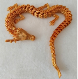 3D打印定制龍年擺件過程是,先在電腦上擺好造型,加上支撐。加好支撐的文件就可以上機(jī)打印了,選擇的是SLA工藝,白色樹脂光固化一體成型。光敏樹脂打印,精度高、成型快,易于模型后期打磨和上色。3D打印完成后經(jīng)過洗件、去支撐、打磨,龍的白模就做好了。接下來(lái)就可以對(duì)龍模型進(jìn)行上色處理了,處理完成就是成品了,下面看看3D打印龍擺件的成品吧。